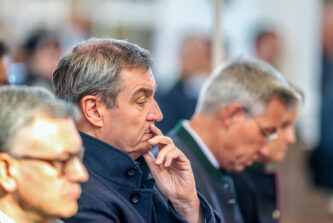 tiller Moment während des Festgottesdienstes: Ministerpräsident Dr. Markus Söder in der ersten Reihe der Basilika Tuntenhausen.
