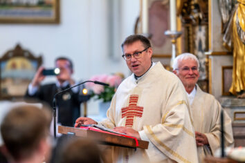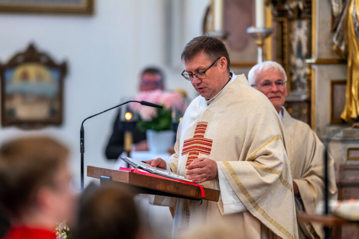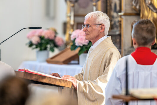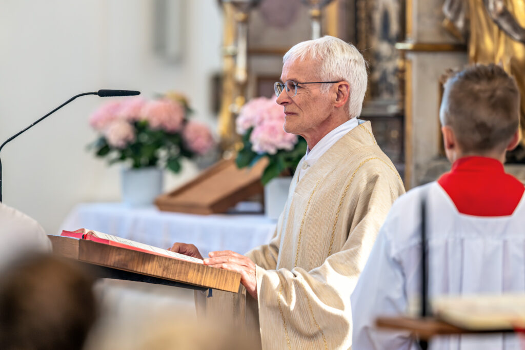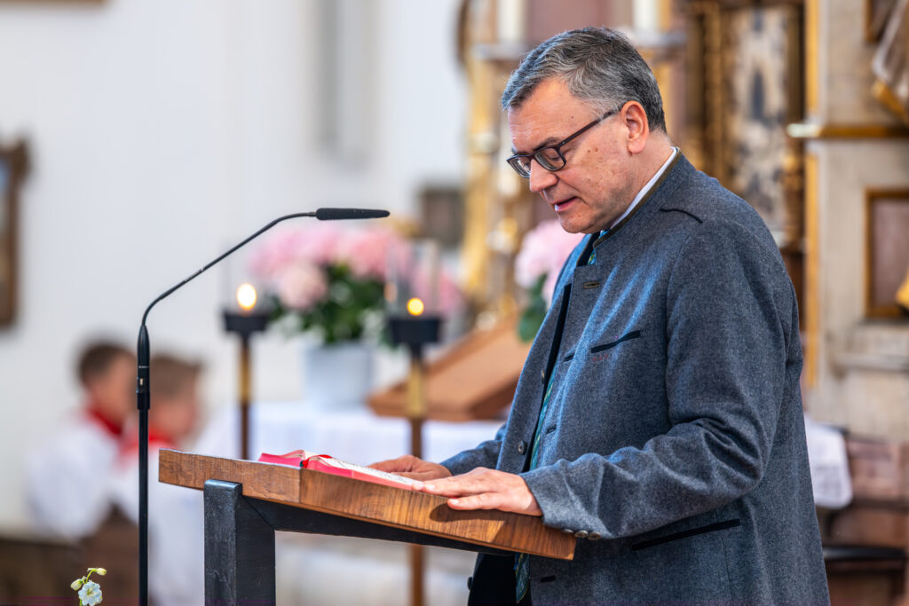 Pfarrer Richard Basta (Leiter der Geschäftsstelle des Katholischen Männervereins Tuntenhausen) begrüßt die Ehrengäste der Wallfahrt.