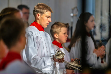 Mit großer Sorgfalt vorbereitet: Eine Ministrantin beim Festgottesdienst in der Basilika Tuntenhausen. Auch solche stillen Details prägten die besondere Atmosphäre der Frühjahrswallfahrt.