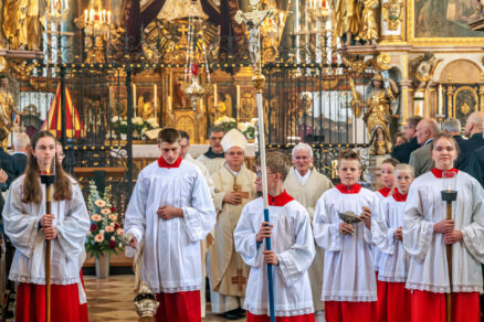 Feierlicher Auszug nach dem Festgottesdienst in der Basilika Tuntenhausen: Ministranten, Geistliche und Teilnehmer prägten das eindrucksvolle Bild der Frühjahrswallfahrt des Katholischen Männervereins.