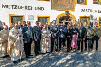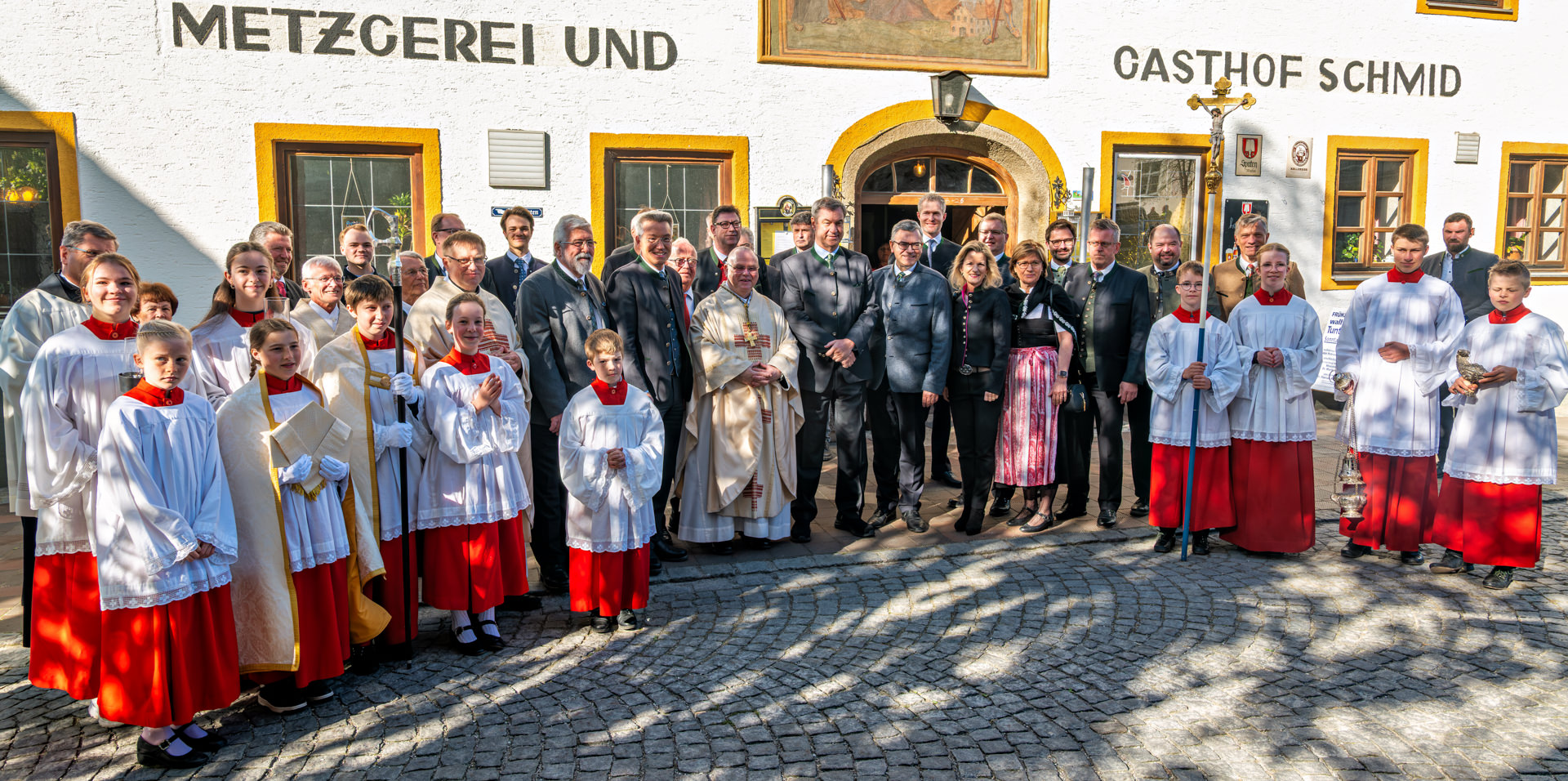 Die Frühjahrswallfahrt des Katholischen Männervereins Tuntenhausen führte zahlreiche Ehrengäste zusammen. Vor dem Festgottesdienst stellten sich Geistlichkeit, Ministranten, Vereinsvertreter und politische Gäste mit Ministerpräsident Dr. Markus Söder zum Gruppenbild vor dem Gasthof Schmid.
